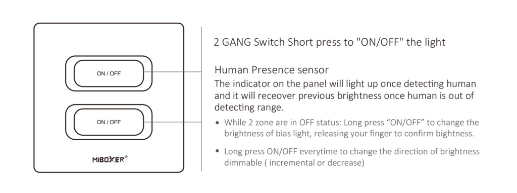 Produktinformationen "Synergy 21 LED Fernbedienung 2 Gang Smart Switch Zigbee 3.0 + 2,4GHz Bewegungssensor + Dimm *Milight"