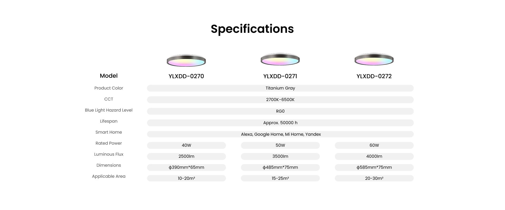 Light Dimensions: F385mm x 75mm Luminous Flux: 2300lm Color Temperature: 2700K-6500K Room Size: 10-20? Color Rendering Index: Ra=90 Rated Power: 38 W Rated Input: 110V-240V~50/60Hz Equivalent: 380W