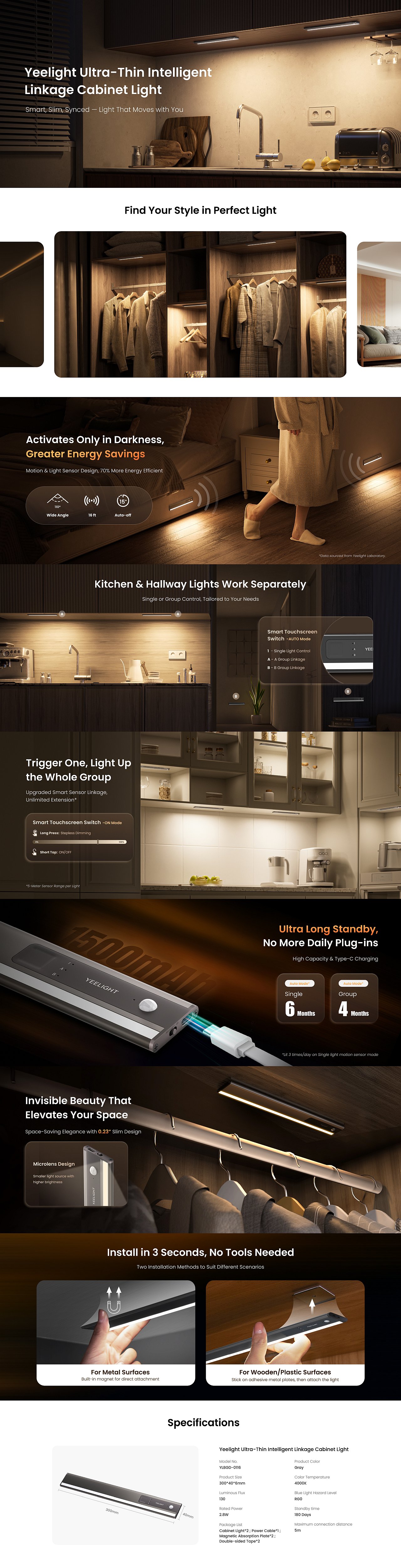 Yeelight Ultra-Thin Intelligent Linkage Cabinet Light A30(30cm) - 2 Pack – LED Produkt