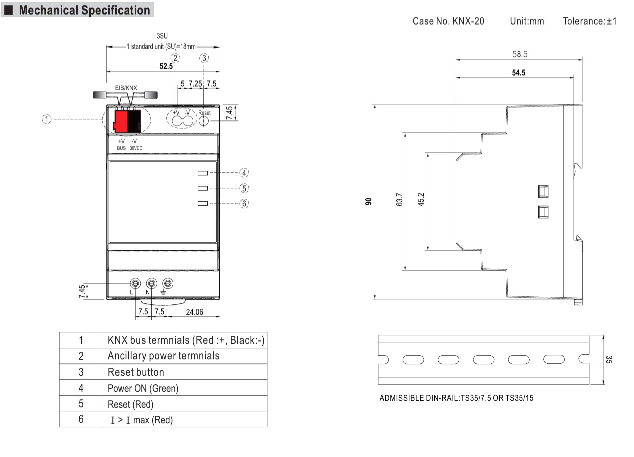 Das KNX-Netzteil KNX-20E-640 ist ein 640-mA-Netzteil mit hohem Wirkungsgrad und einem kompakten Formfaktor von nur 3 SU (52,5 mm). Das Gerät verfügt über einen KNX-Bus-Drosselausgang sowie einen zusätzlichen Ausgang für Hilfsenergie. Der weite Betriebstemperaturbereich von -30 bis +70 °C ermöglicht den Einsatz in vielfältigen Anwendungen. LED-Anzeigen signalisieren den Normalbetrieb, Überlastzustände und den RESET-Vorgang. Das Gerät eignet sich ideal zur Stromversorgung aller Produkte, die das KNX-Markenzeichen tragen. Mit über 30 Jahren Erfahrung in der Entwicklung industrieller Netzteile wurde das KNX-20E-640 als zuverlässige und sichere Lösung für KNX-Bus-Umgebungen konzipiert.