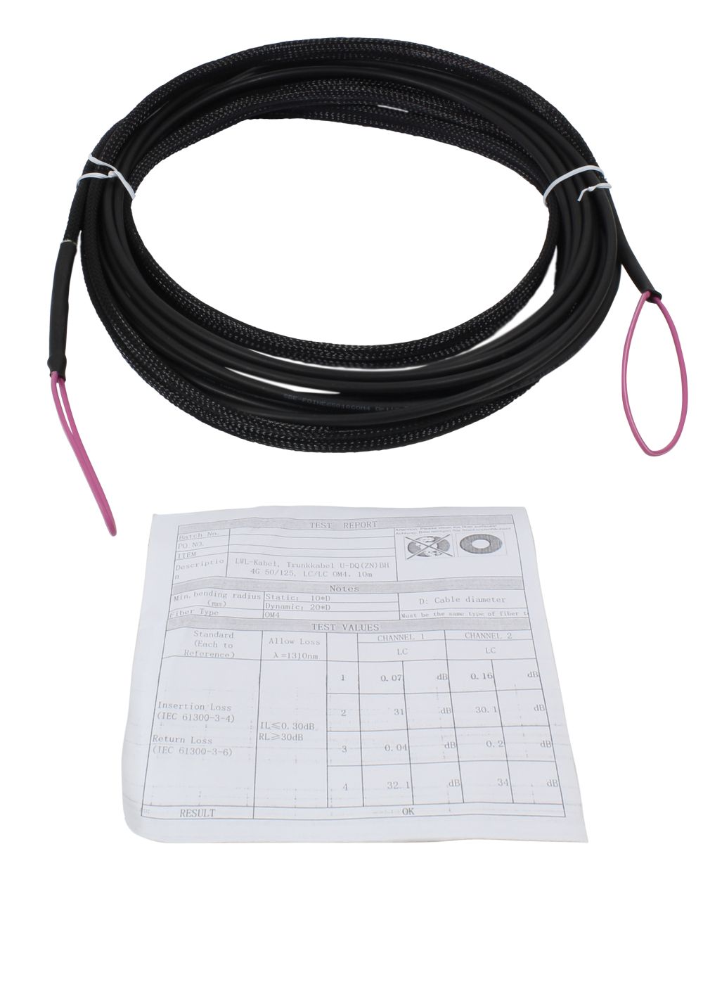 Dämpfungsprotokoll für jede einzelne Faser wird mitgeliefert