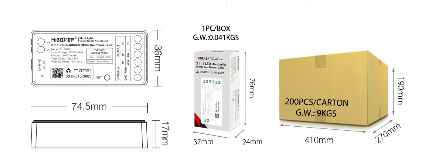 Weiterführende Links zu "MiBoxer SM2 LED Controller Matter-Serie 2in1 Single colour/CCT(dual white) dim DC12/24V Matter Over"
