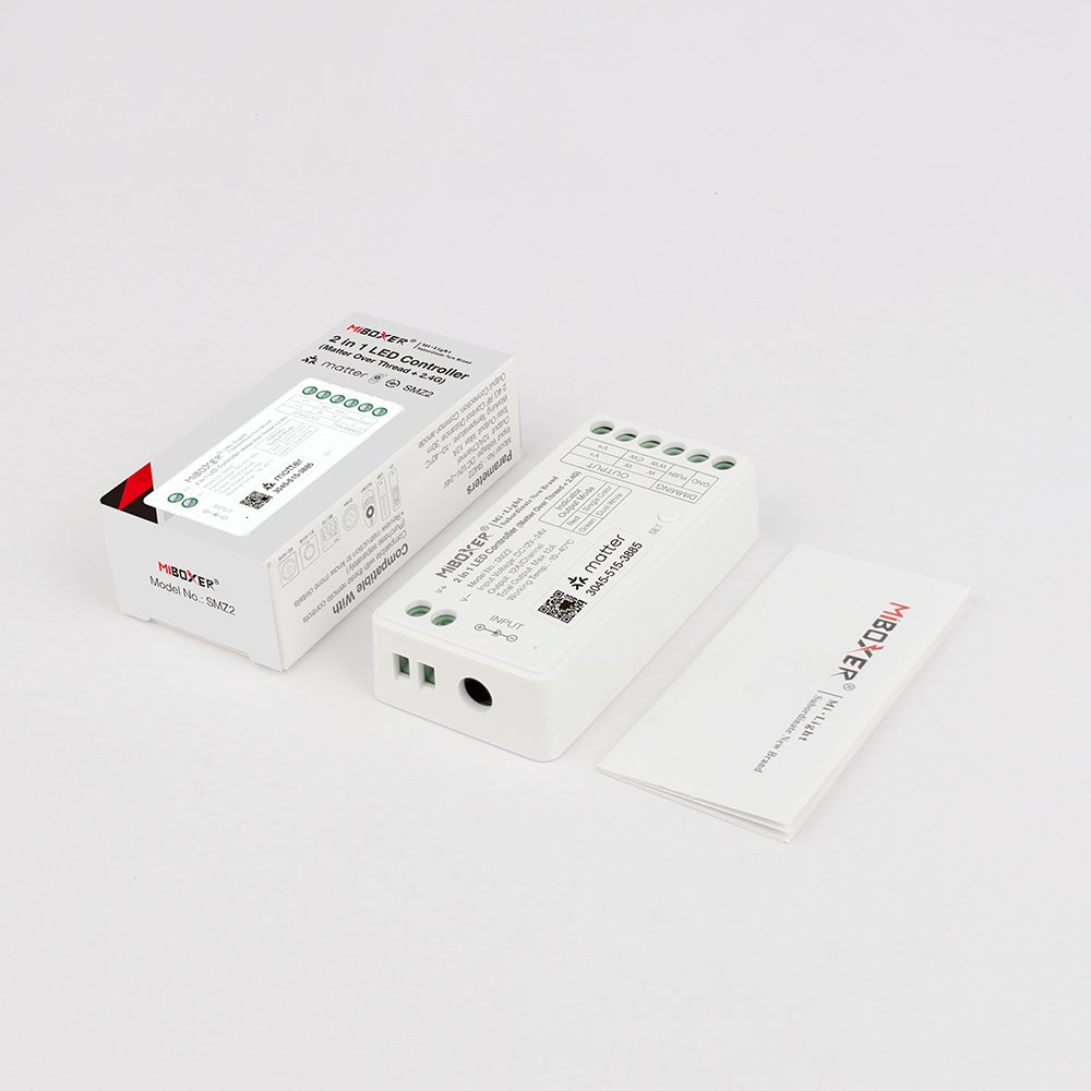 Der MiBoxer SMZ2 2in1 LED Controller dient zur Steuerung von LED-Beleuchtungssystemen über Matter over Thread sowie 2,4 GHz RF. Er ermöglicht die Integration in gängige Smart-Home-Plattformen und eignet sich für verschiedene LED-Anwendungen.