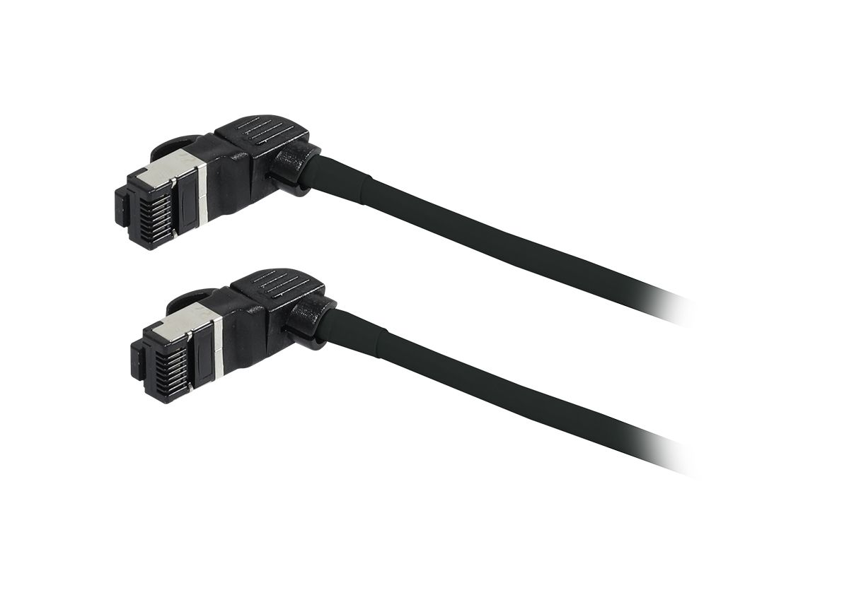 Anschluss Seite B: CAT6A, 360Grad drehbarer Stecker RJ45 mit Rasternasenschutz