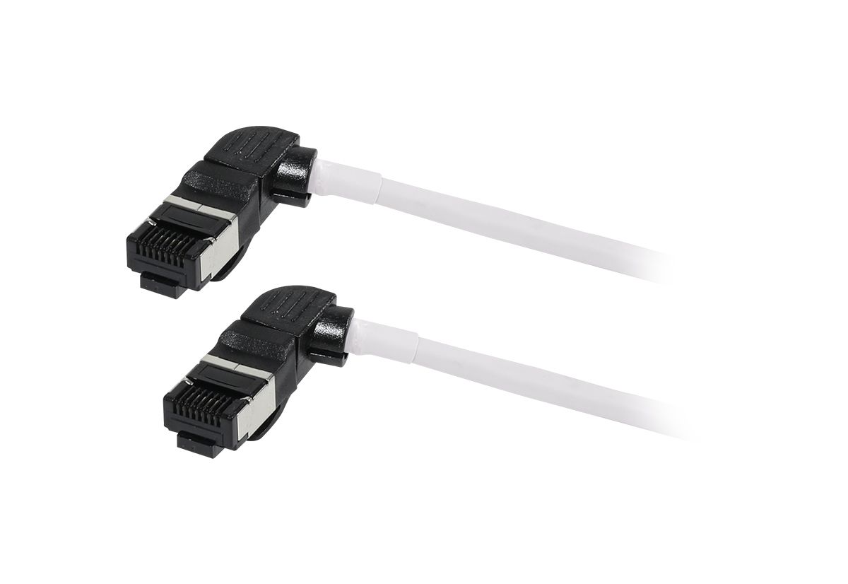 Anschluss Seite A: CAT6A, 360Grad drehbarer Stecker RJ45 mit Rasternasenschutz