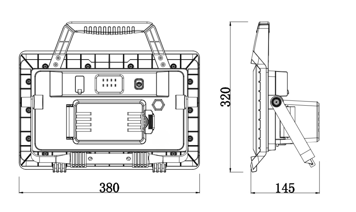 - Kompakte Maße: Mit einer Größe von 380 × 145 × 320 mm und einem Gewicht von 2,8 kg ist die Leuchte mobil und flexibel einsetzbar.