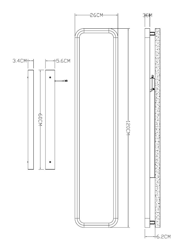 Größe: 1200mm x 260mm x 30mm