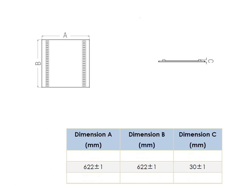 Größe (Außenmaße):622mm x 622mm x 30mm