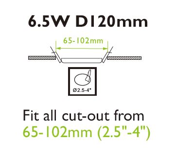 Einbaudurchmesser: 65-102mm einstellbar oder Aufputzmontage