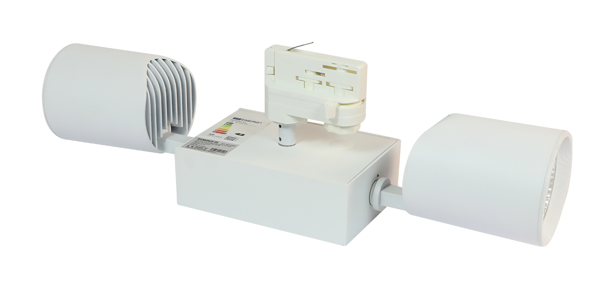 Dieser leistungsstarke LED Doppel-Stromschienenstrahler ist für professionelle Beleuchtungssysteme mit 3-Phasen Stromschienen konzipiert. Zwei individuell ausrichtbare Strahler ermöglichen eine flexible und gezielte Ausleuchtung von Verkaufsflächen, Ausstellungen oder Präsentationsbereichen.