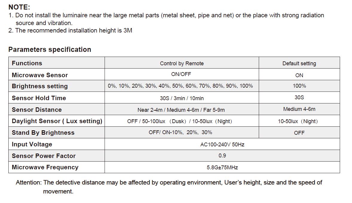 IP54 Rundleuchte, Lichtfarbe ww/nw/cw einstellbar und Radarsensor Anschluss: 200-240VAC... mehr