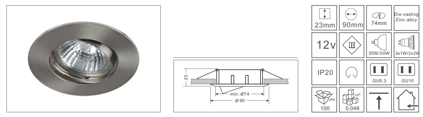 Deckeneinbausatz für GU10 oder GX5,3 Spots