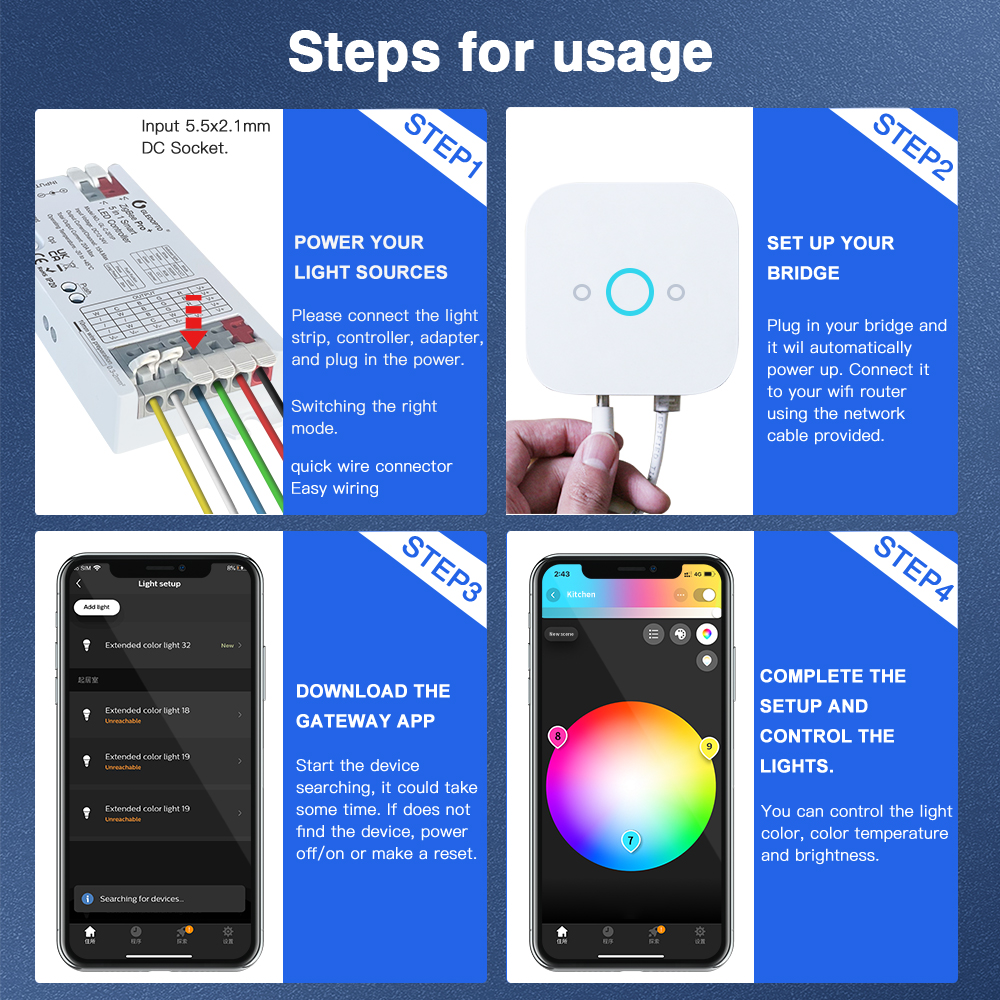 LED strips type: RGBCCT, RGBW, RGB, CCT, Dimer