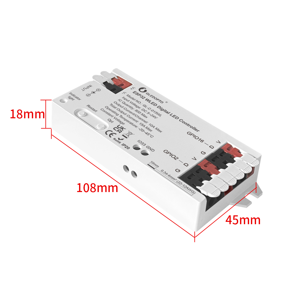- Works with RGB, RGBW digital strip light