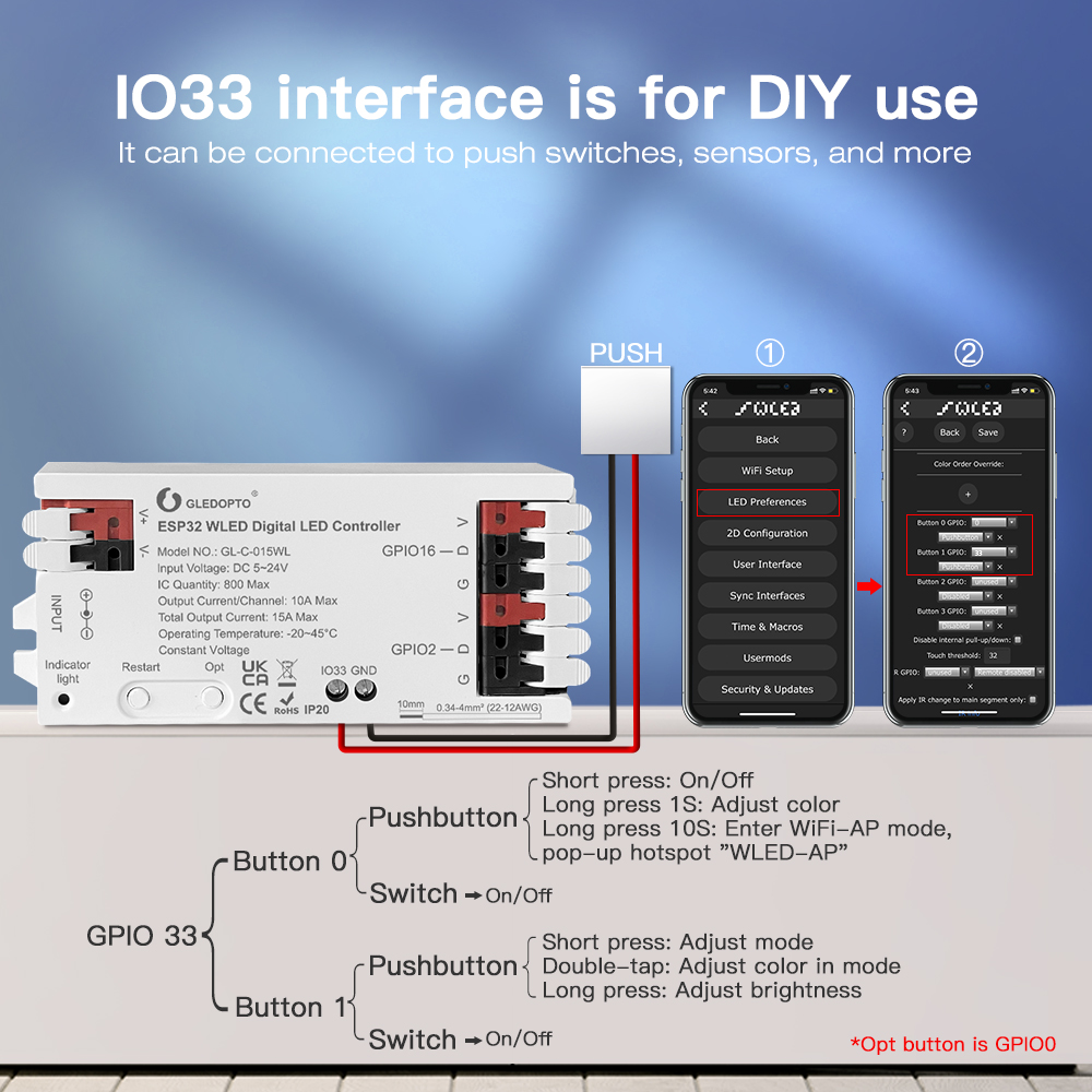 ESP32 WLED Digital LED Controller,