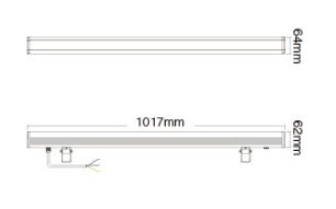 Mit der Schutzart IP66 ist der RGB+CCT LED Wall Washer Light vollständig gegen Staub und starkes Strahlwasser geschützt, was ihn ideal für den Einsatz im Freien macht. Das kompakte Design mit den Maßen 1017*64*62mm ermöglicht eine einfache Installation und Integration in verschiedene architektonische Konzepte.
