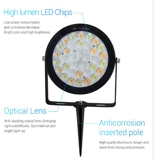 Diese Gartenlampe ist die ideale Wahl für die Beleuchtung von Gärten, Wegen und anderen Außenbereichen. Sie ist einfach zu installieren und kann mit einer Funkfernbedienung und/oder einem WLAN-Controller für iOS und Android gesteuert werden, die beide separat erhältlich sind.