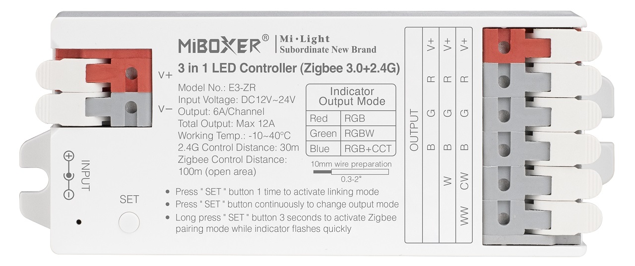 Entdecken Sie den 3in1 LED Controller (Zigbee3.0/2.4GHz), ein vielseitiger und leistungsstarker LED Strip Controller für RGB/RGBW/RGB+CCT. Dieses innovative Gerät, Modellnummer E3-ZR, bietet Ihnen maximale Flexibilität und Kontrolle über Ihre LED-Beleuchtung.