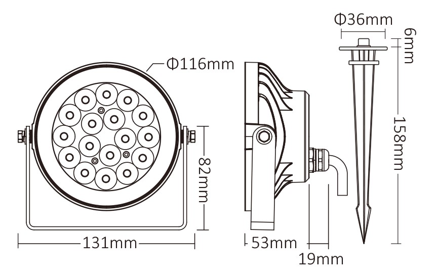 Die Leuchte verfügt über einen präzisen 15° Abstrahlwinkel, der eine gezielte Beleuchtung von Gartenflächen ermöglicht. Mit der robusten Schutzart IP66 ist diese Gartenleuchte optimal gegen Staub und Wasser geschützt, was sie besonders langlebig und ideal für den Außenbereich macht.