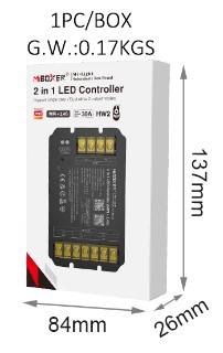 Der 2-in-1 LED Controller (WiFi+2.4G), Modell Nr. HW2, bietet eine herausragende Kombination aus WiFi- und 2.4 GHz RF-Technologie für die präzise Steuerung Ihrer LED-Beleuchtung. Mit einer Eingangsspannung von DC12~48V und einer beeindruckenden Ausgangsleistung von 30A pro Kanal, ist dieser Controller für anspruchsvolle Beleuchtungsprojekte ausgelegt und unterstützt eine maximale Gesamtleistung von 30A.