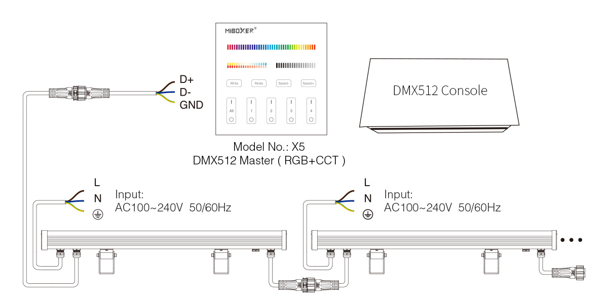 Weiterführende Links zu "MiBoxer D5-W72 LED DMX Wallwasher 72W RGB+CCT IP66"