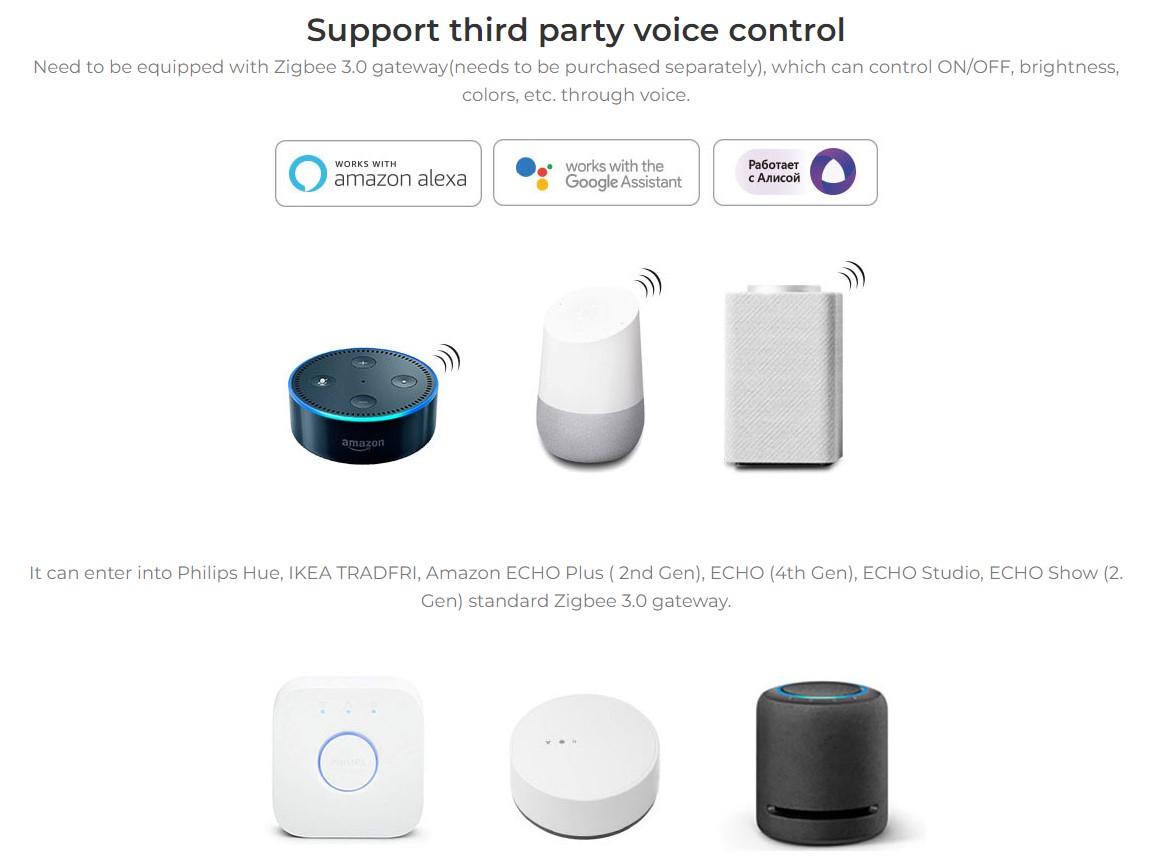 Control Distance: 30m (2,4G) / 100m opem area (Zigbee)