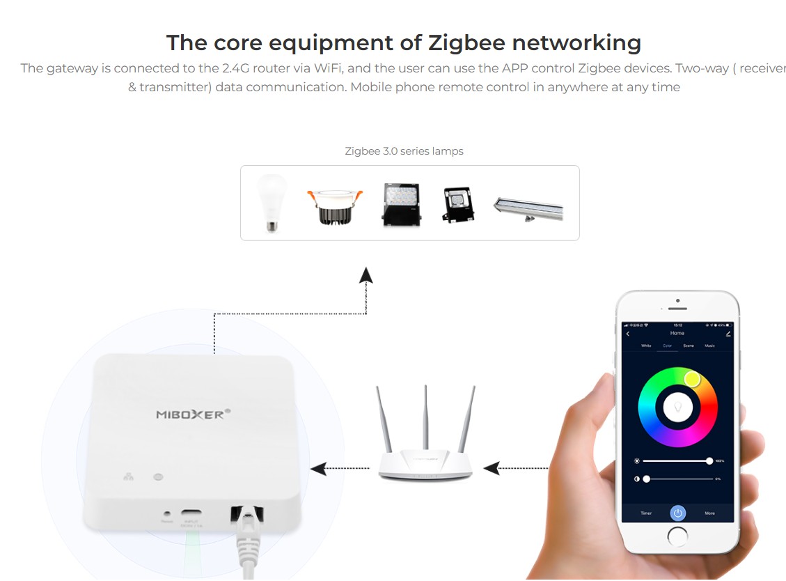 MiBoxer ZB-BOX2 LED Gateway wired Zigbee 3.0