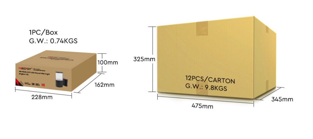 MiBoxer WA5-09R-ZL LED Garden Round Wall Light 12W RGB+CCT Zigbee 3.0 + 2.4G IP66 24V