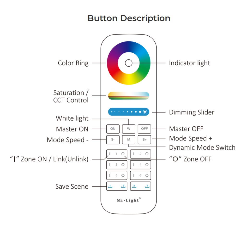 6-Zone + 2 Scenes RGB+CCT Remote