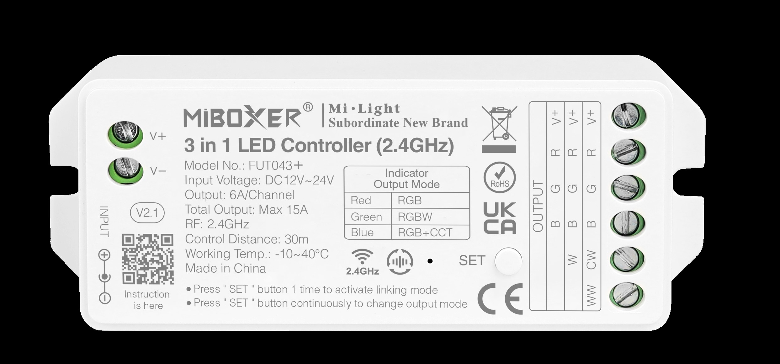 Weiterführende Links zu "MiBoxer FUT043+ LED Controller RGB-WW (RGB-CCT) DC12/24V 2,4G"
