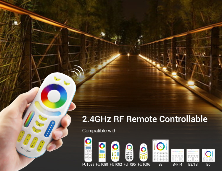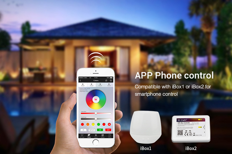 Steuerbar mit Funkfernbedienung und/oder WLAN Controller für iOS und Android, beide separat erhältlich, siehe Zubehör