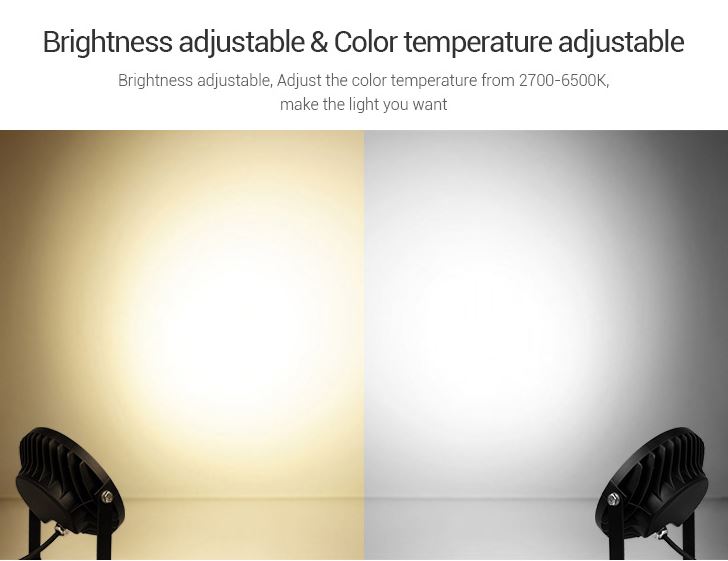 Die 15W RGB+CCT LED Gartenlampe ermöglicht eine flexible Steuerung über eine Funkfernbedienung oder einen WLAN Controller für iOS und Android – beide Zubehörteile sind separat erhältlich. Die fortschrittliche RGB+CCT-Technologie ermöglicht es Ihnen, die Farbtemperatur zwischen 2700K und 6500K einzustellen und beeindruckende Farbstimmungen zu erzeugen.