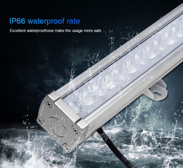 Das RGB+CCT LED Wall Washer Light beeindruckt durch seinen Beam Angle von 15° x 60°, der eine breite und gleichmäßige Lichtverteilung ermöglicht, und einer Illuminationsdistanz von über 15m, ideal für die Beleuchtung größerer Flächen. Mit der Schutzart IP66 ist dieses Licht für den Einsatz im Freien bestens geeignet und schützt zuverlässig gegen Staub und Wasser.
