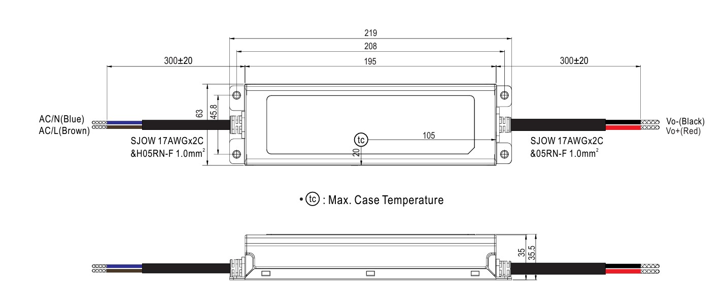 LxBxH 219x63x35mm