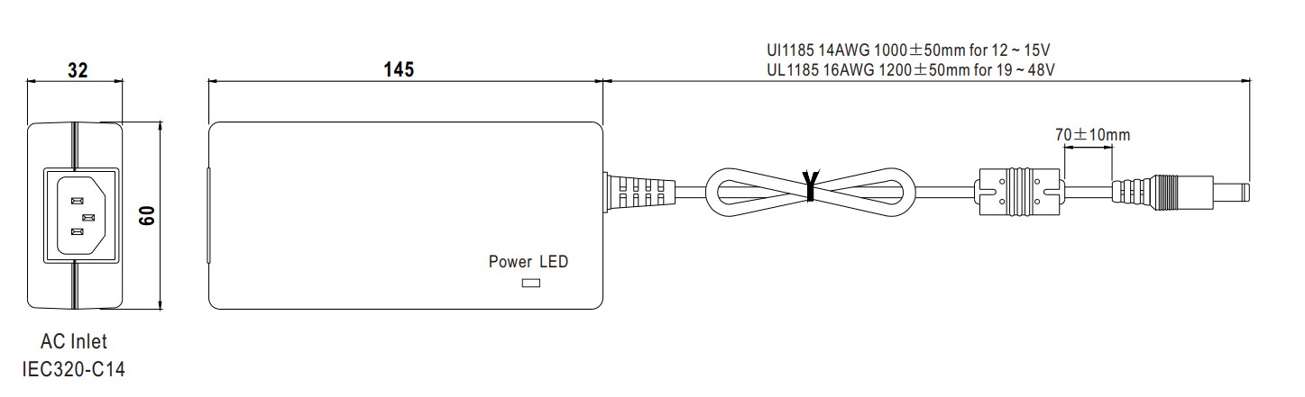 Voltage: 90 ~ 264VAC, 127 ~ 370VDC, 47~63Hz
