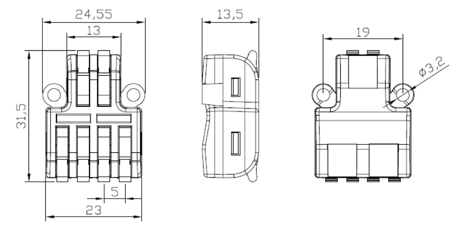 3 Eingänge und 3 Ausgänge für Elektrokabel