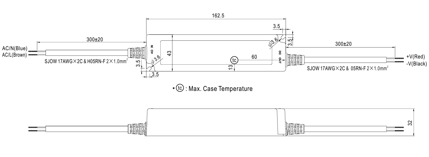 LxBxH 162,5*43*32mm