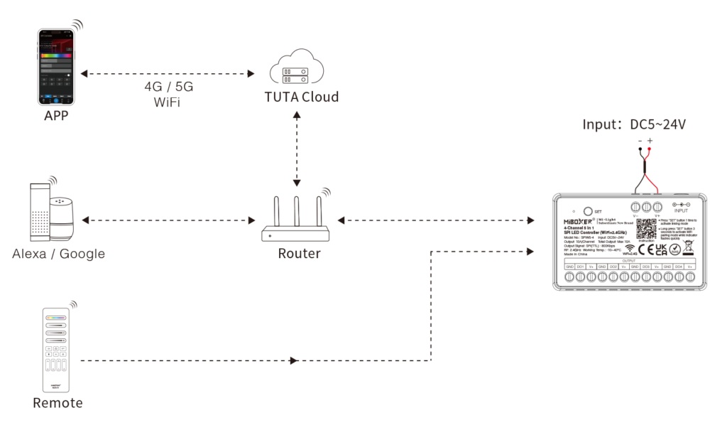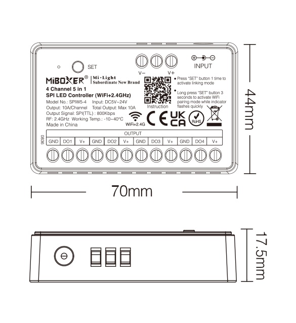 Produktinformationen "MiBoxer SPIW5-4 LED Pixel LED Controller SPI-Serie 5 in 1 SPI (2.4GHz+Wifi) 4 Kanäle"
