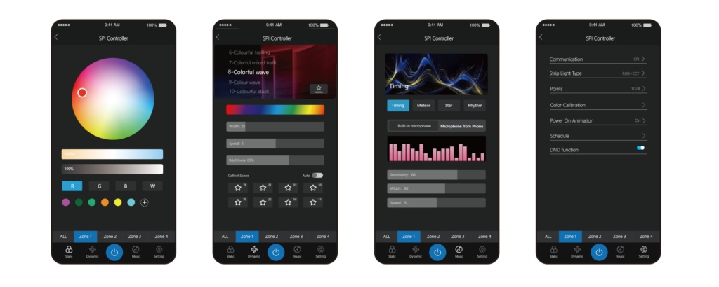 • 5in1 Unterstützung: Single Color, CCT, RGB, RGBW, RGB+CCT
