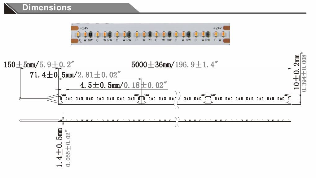 LED Anzahl: 224*2110SMD/m, Gesamt: 1120LEDs