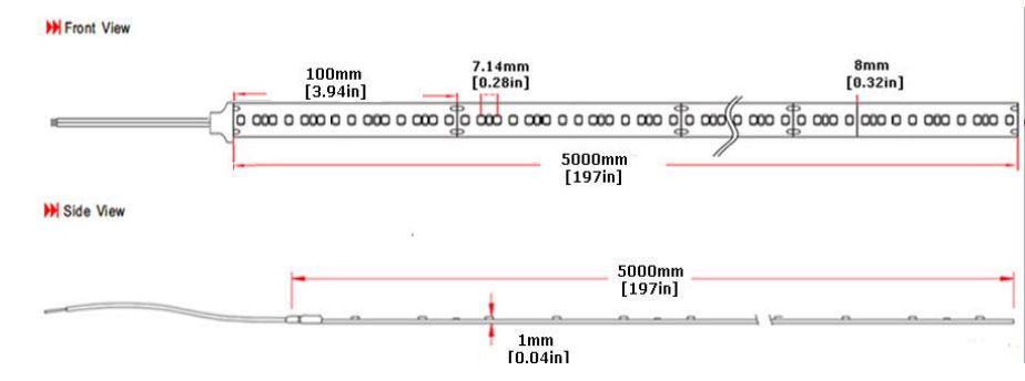 Maße LED Strip: 5000*12*2 mm