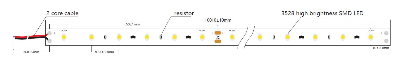 PCB-Farbe: weiss, offenes Kabelende (360±5mm)