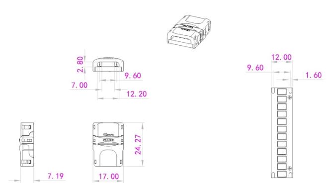 no wire, 2 pin, DC3V-24V / 5A; for PCB width: 12mm single color Solderpad: 2