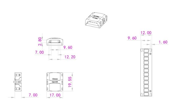 no wire, 2 pin, DC3V-24V / 5A; for PCB width: 12mm single color Solderpad: 2