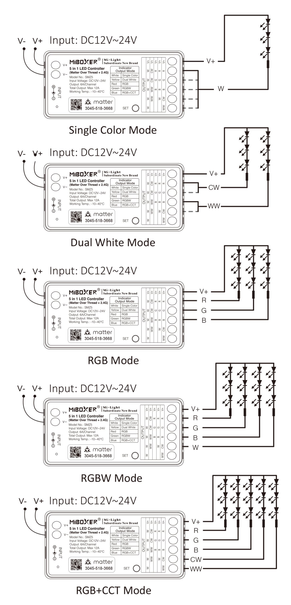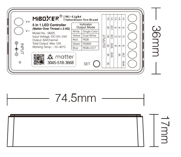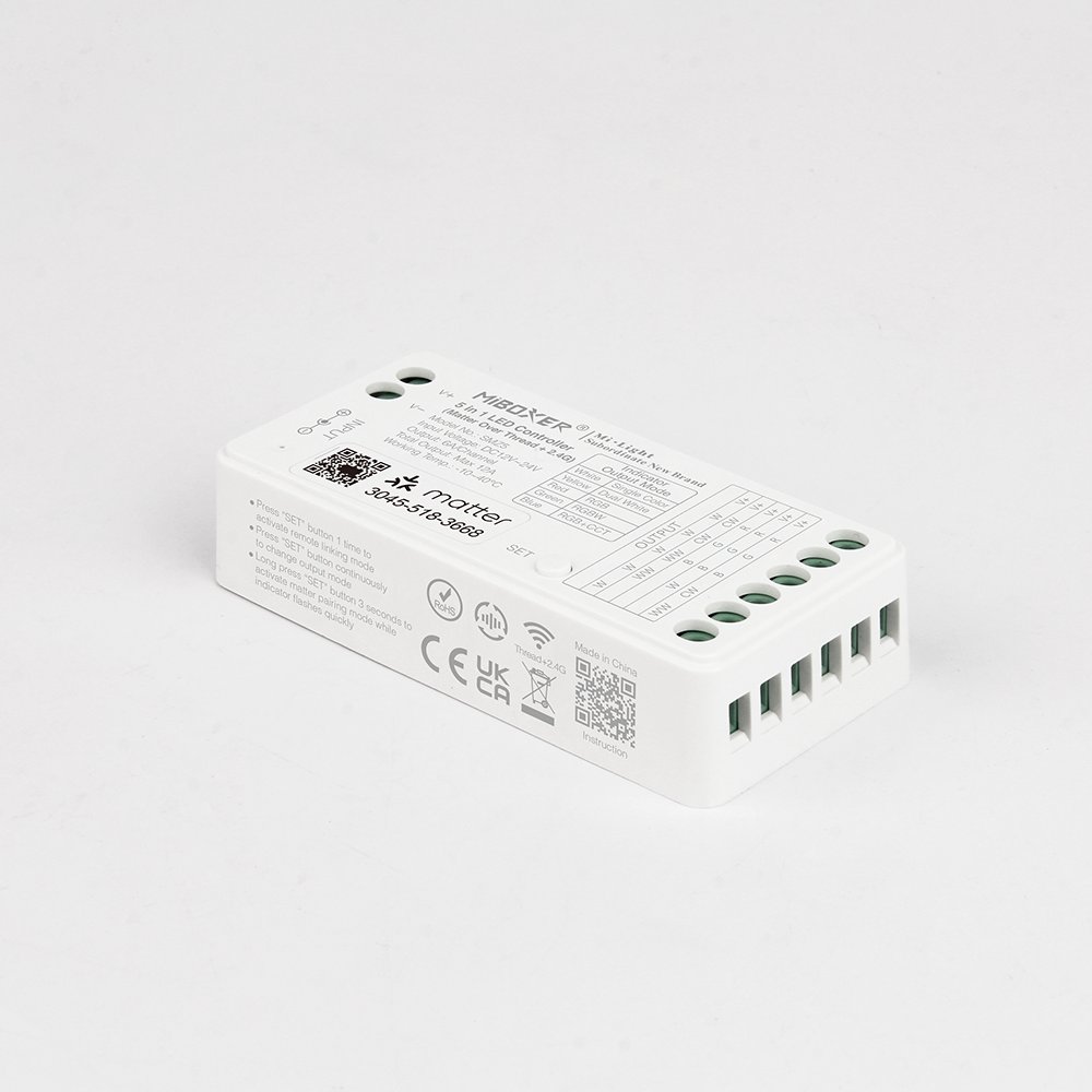 Der MiBoxer SMZ5 5in1 LED Controller dient zur Steuerung von LED-Beleuchtungssystemen über Matter over Thread sowie 2,4 GHz RF. Er unterstützt verschiedene LED-Typen und ermöglicht die Integration in gängige Smart-Home-Plattformen.