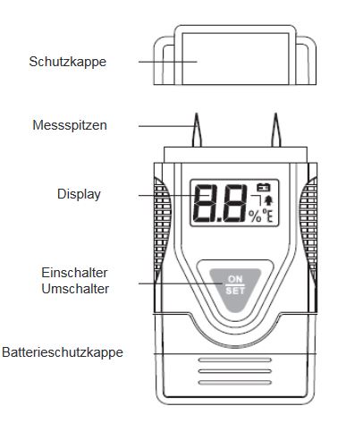 Feuchtigkeitsmessgerät für Holz und Mauerwerk Anzeige: LCD-Display Messbereich: Holz 6~42% Genauigkeit: ±2% bei Werten <30, sonst 4% Auflösung: Holz 1% Stromversorgung: 4xLR44 Batterie Abmessungen: 80*40*20mm Lieferumfang: EM4806 Feuchtigkeitstester Bedienungsanleitung weitere Informationen entnehmen sie bitte dem Datenblatt